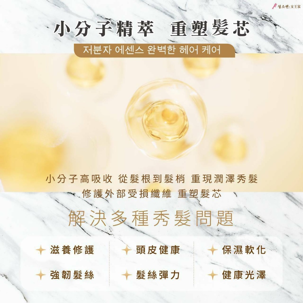 - 精華級護髮配方:小分子設計深入髮絲提升吸收效果